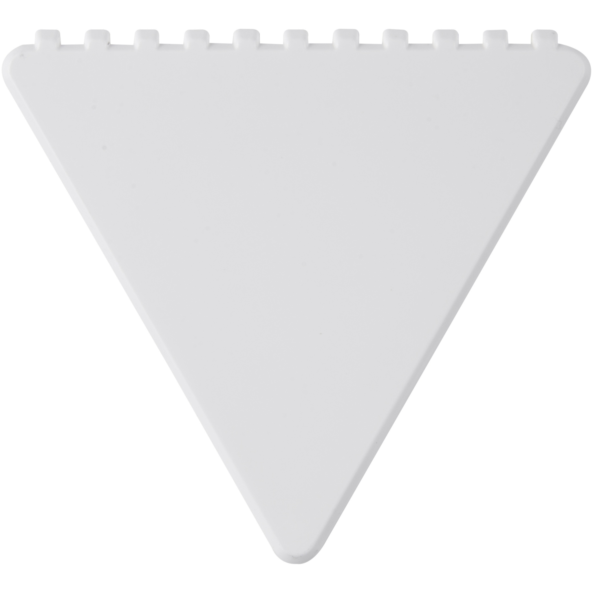 Kolmionmuotoinen jääkaavin tuulilasin puhdistukseen, suuri logomerkintäalue. Kolmion kaikkia sivuja voidaan käyttää jään poistamiseen. Valmistettu Isossa-Britanniassa kierrätetystä muovista. Materiaalissa voi olla struktuuria kierrätetyn materiaalin ominaisuuden vuoksi.