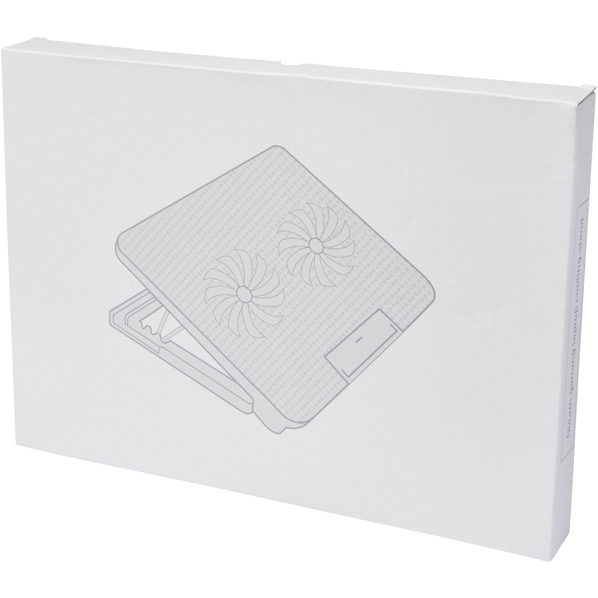 Kannettavalle tietokoneelle suunniteltu jäähdytysteline, jossa on neljä säädettävää korkeusasetusta pelien pelaamiseen tai elokuvien katseluun mukavimmassa kulmassa (10°- 23°). Kahden hiljaisen tuulettimen tuottama voimakas ilmavirta estää kannettavan tietokoneen ylikuumenemisen. Suuri tasainen pinta on yhteensopiva markkinoiden useimpien kannettavien tietokoneiden kanssa ja kestää enintään 20 kg:n painon. Jalusta voidaan taittaa kokoon kuljetuksen helpottamiseksi. Kaksi integroitua USB-porttia, joita voidaan käyttää USB-keskittimenä, jonka USB 2.0 -tuettu siirto voi olla enintään 60 Mt/s. Toimitetaan luontoa säästävästä materiaalista valmistetussa lahjapakkauksessa.