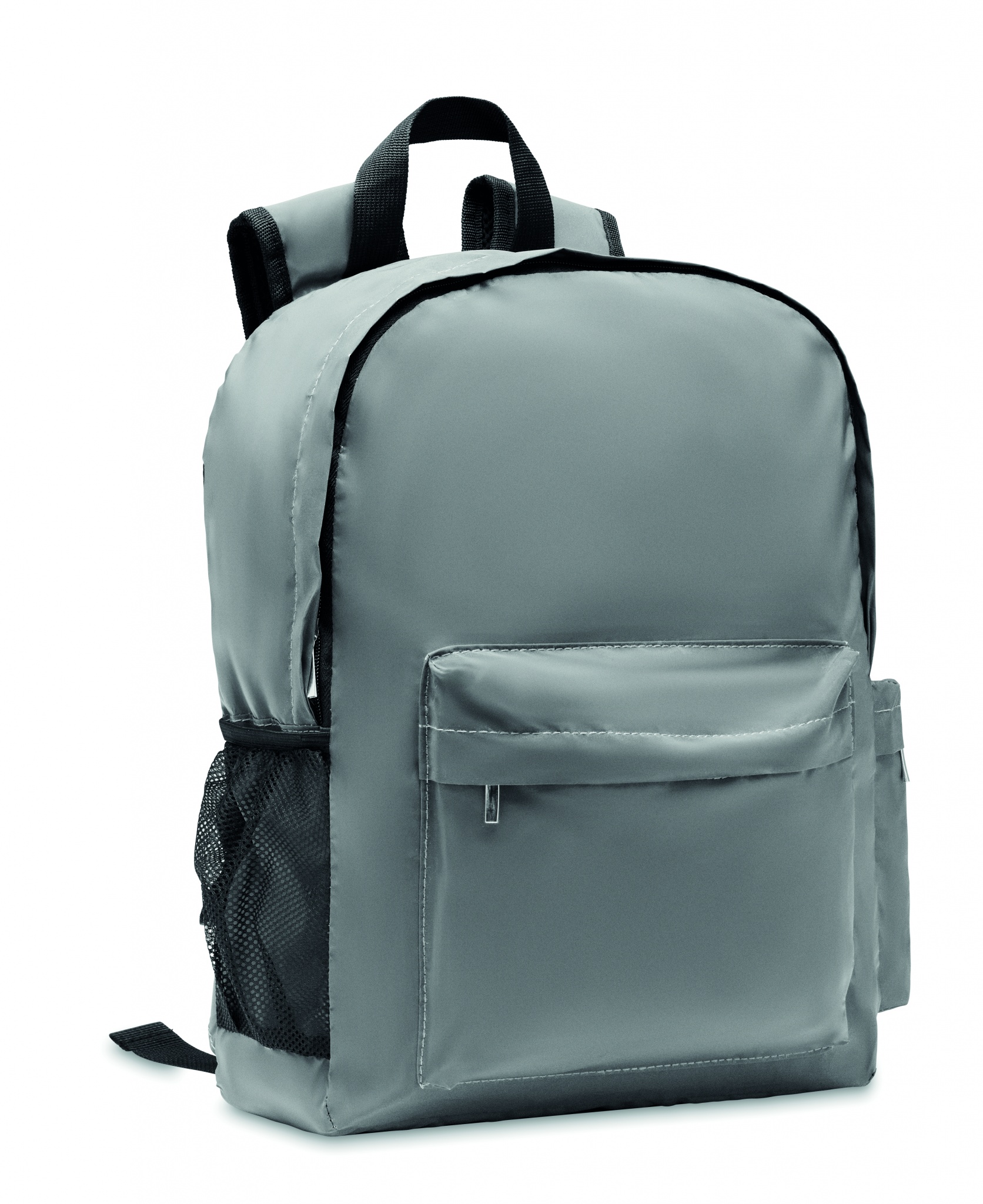 Reppu heijastavaa 190T polyesteriä. Pehmustettu selkäosa, hihnat ja pohja. Repussa on lokero 15'' kannettavalle tietokoneelle. Vetoketjullinen tasku edessä ja verkkotasku sivulla sekä muita vetoketjullisia taskuja sivulla.