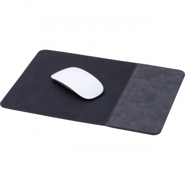 Polyuretaanista (PU) valmistettu hiirimatto, jossa on langaton latausalue. Jotta voit käyttää 15 W:n langatonta latauspintaa yhteensopivan älypuhelimen kanssa, hiirimatto on liitettävä sopivaan virtalähteeseen mukana tulevalla USB-A - USB-C -latauskaapelilla. Logosi on painettu latausalueen alaosaan. Hiirimaton keskelle on saatavilla pyynnöstä painatus.