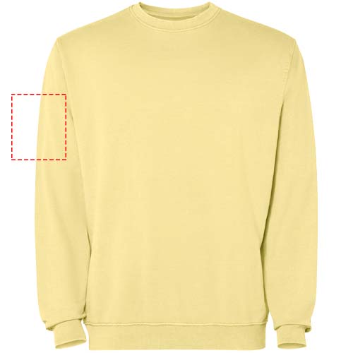 Unisex-svetari happopesuviimeistelyllä. 2 x 1-uurrettu kaulus, hihansuut ja helma sävy sävyyn. Vahvistetut saumat hihansuissa, helmassa, vyötärönauhassa ja kainaloissa. Sävy sävyyn -peittotikkaus pääntiessä.