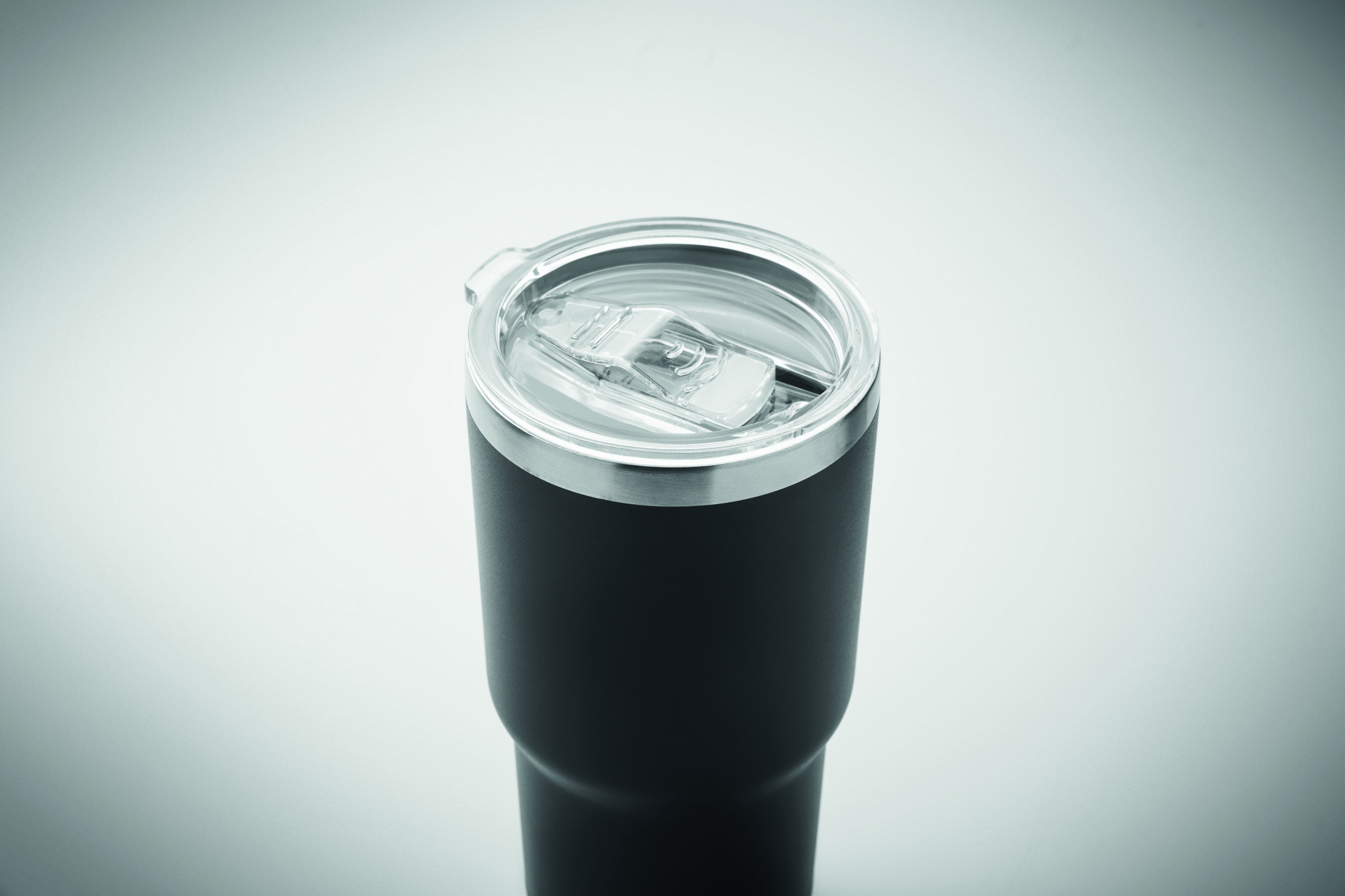 Kaksiseinäinen termosmuki kierrätetystä ruostumattomasta teräksestä (90 % kierrätettyä ruostumatonta terästä ja 10 % ruostumatonta terästä). Kannessa on liukuva juoma-aukko. Vuotamaton. Tilavuus: 550 ml.