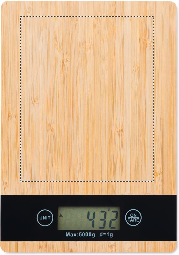 Digitaalinen keittiövaaka ABS ja bambukuorella, maksimi painoraja 5 kg. 2 AAA patteria ei sisälly toimitukseen. Luonnollisen materiaalin (bambu) vuoksi, tuotteiden värissä/ koossa saattaa olla erinäisyyksiä ja tämä voi vaikuttaa painatuksen lopputulokseen.