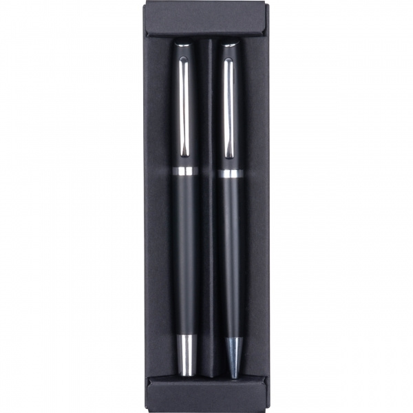 Kierrätetystä alumiinista valmistettu kirjoitussetti, joka koostuu kuulakärkikynästä ja rullapallosta. Tyylikäs muotoilu ja sinikirjoitus puoligeelitäyttö (0,7 mm) takaavat sujuvan kirjoituskokemuksen.