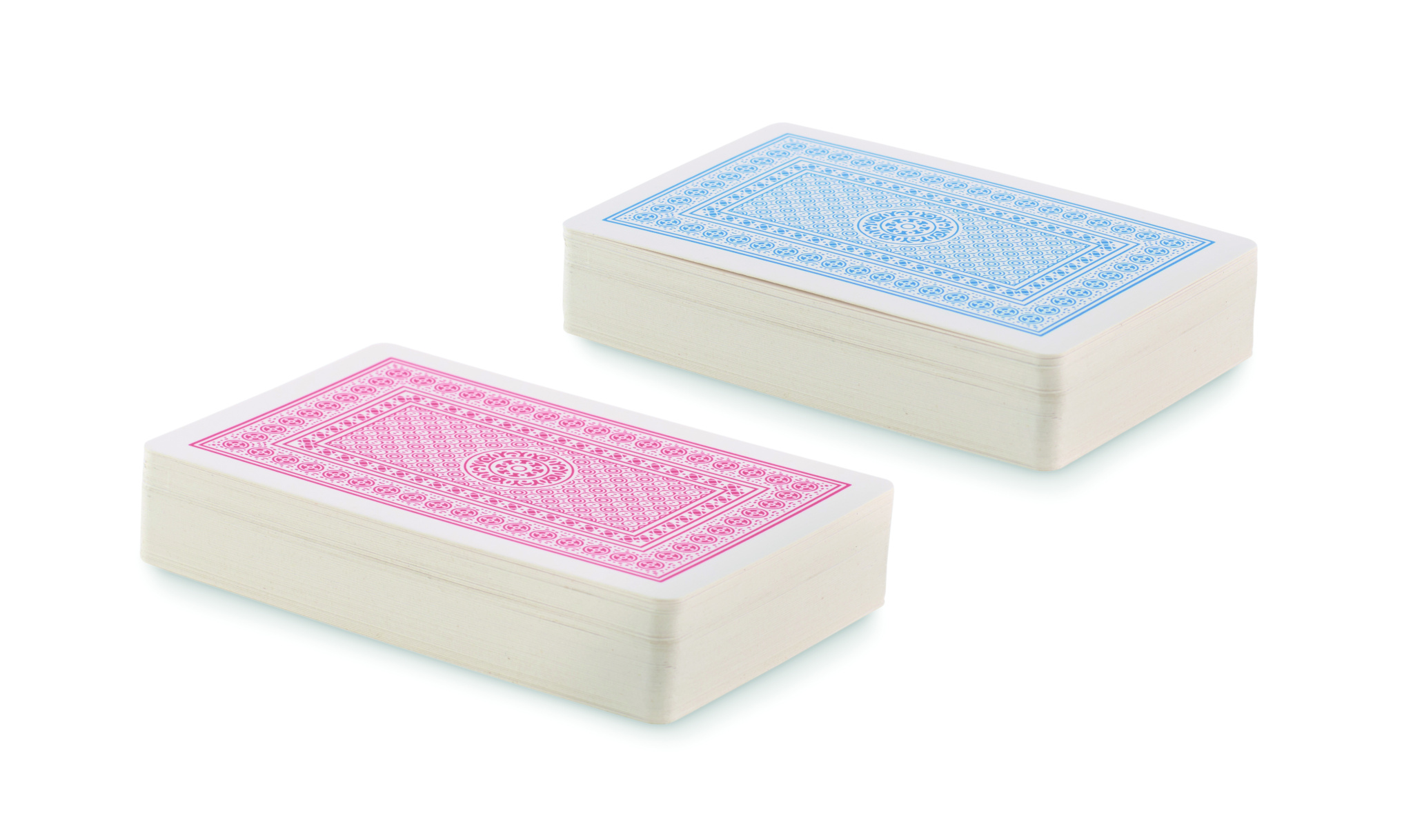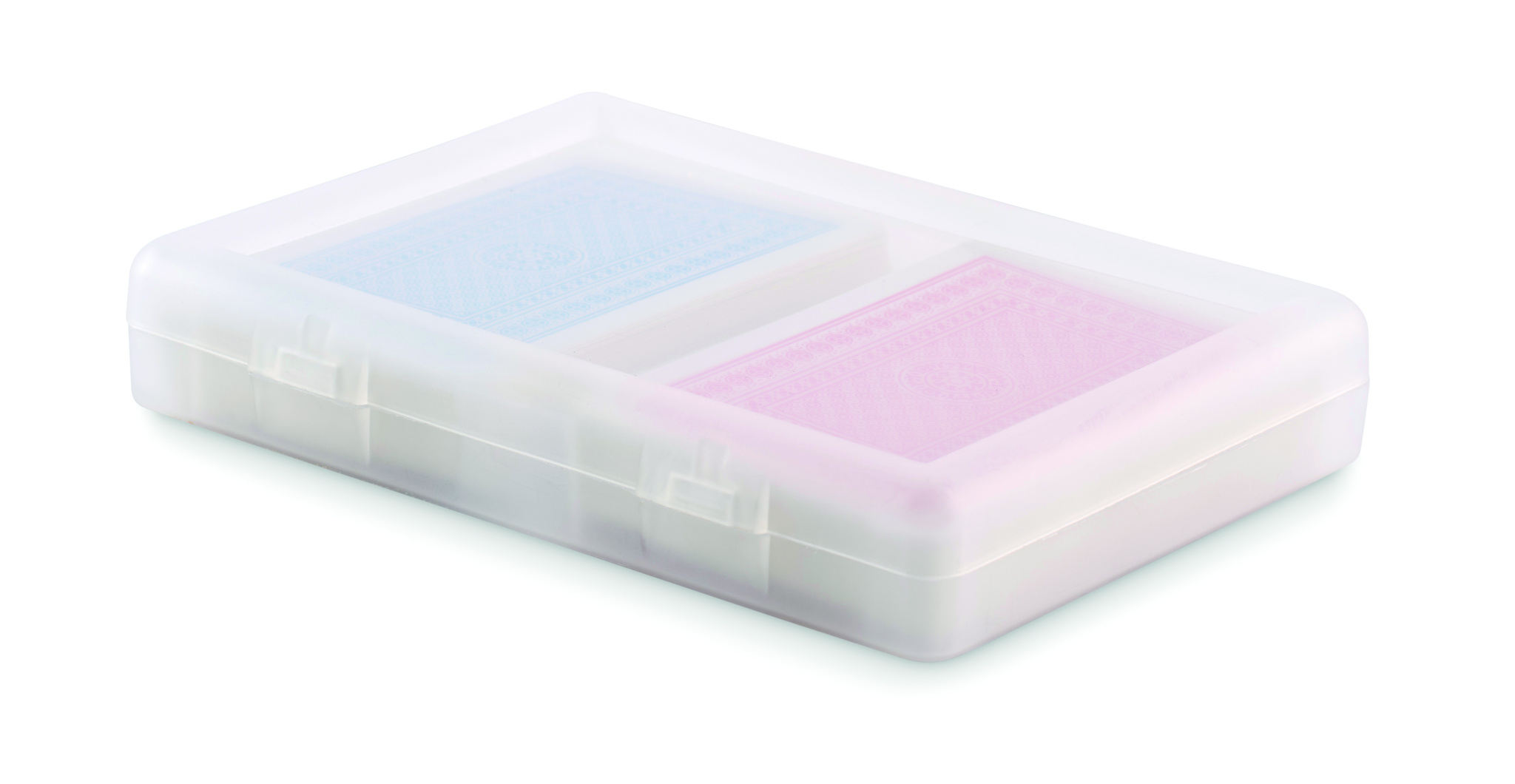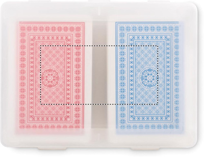 2 klassisen pelikortin sarja kierrätetyssä PP-kotelossa. 2x54 korttia (punainen ja sininen).