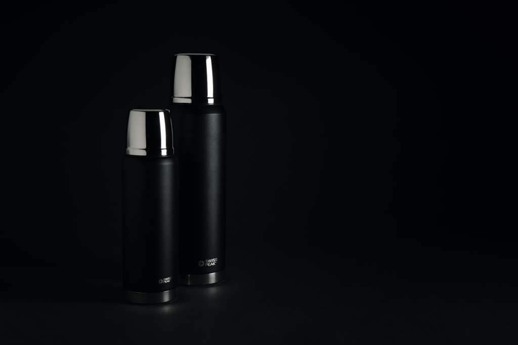 Swiss Peak Elite -sarjan tuotteet ovat tyhjiöeristettyjä, ja niissä on kaksoisseinä 18/8 asteen ruostumattomasta teräksestä. Jauhepinnoitettu musta väri on tehty kestämään! Ei haalistu eikä murru! Väliseinä on pinnoitettu kuparilla parasta mahdollista johtavuutta varten, jotta kuumat juomat pysyvät kuumina 8 tuntia ja kylmät juomat kylminä 24 tuntia. Käsinpesu ja vuotamaton. Sisältö 500 ml.