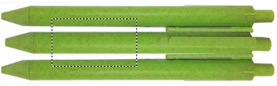 Kuulakärkikynä sinisellä musteella, tuote on valmistettu 50% vehnän oljesta ja 50% ABS.