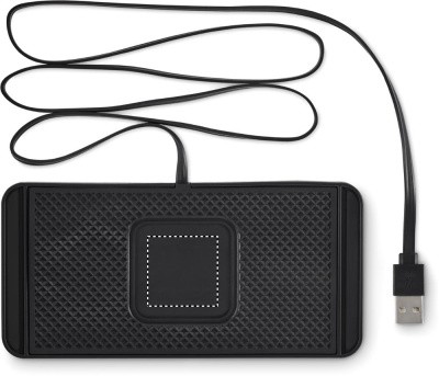 Langaton autolaturi 15 W, liukumaton PVC-pohja. Säädettävä, reunat voidaan leikata koon mukaan. Integroitu USB A -kaapeli, pituus 120 cm.
