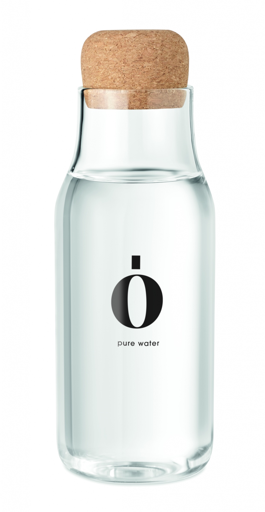 600 ml borosilikaattilasipullo korkista valmistetulla korkilla. Borosilikaattilasiin ei voi kaiverruttaa.