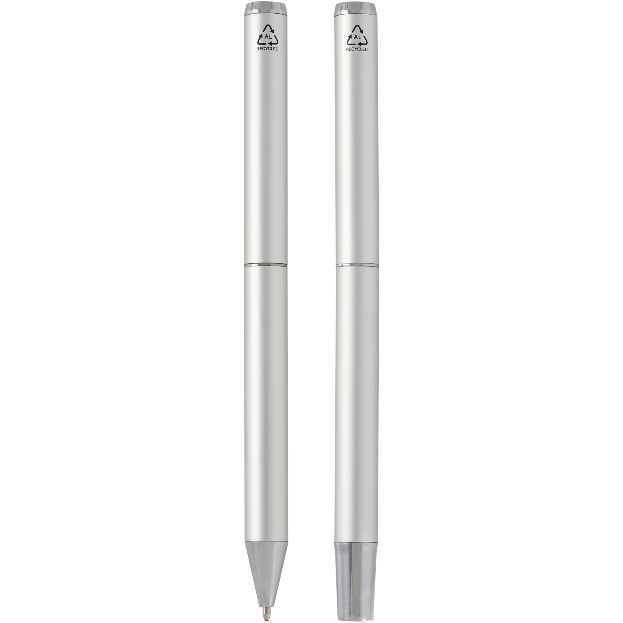 Lucetto kierrätetty alumiininen kuulakärki- ja kuulamustekynäsetti, Hopea