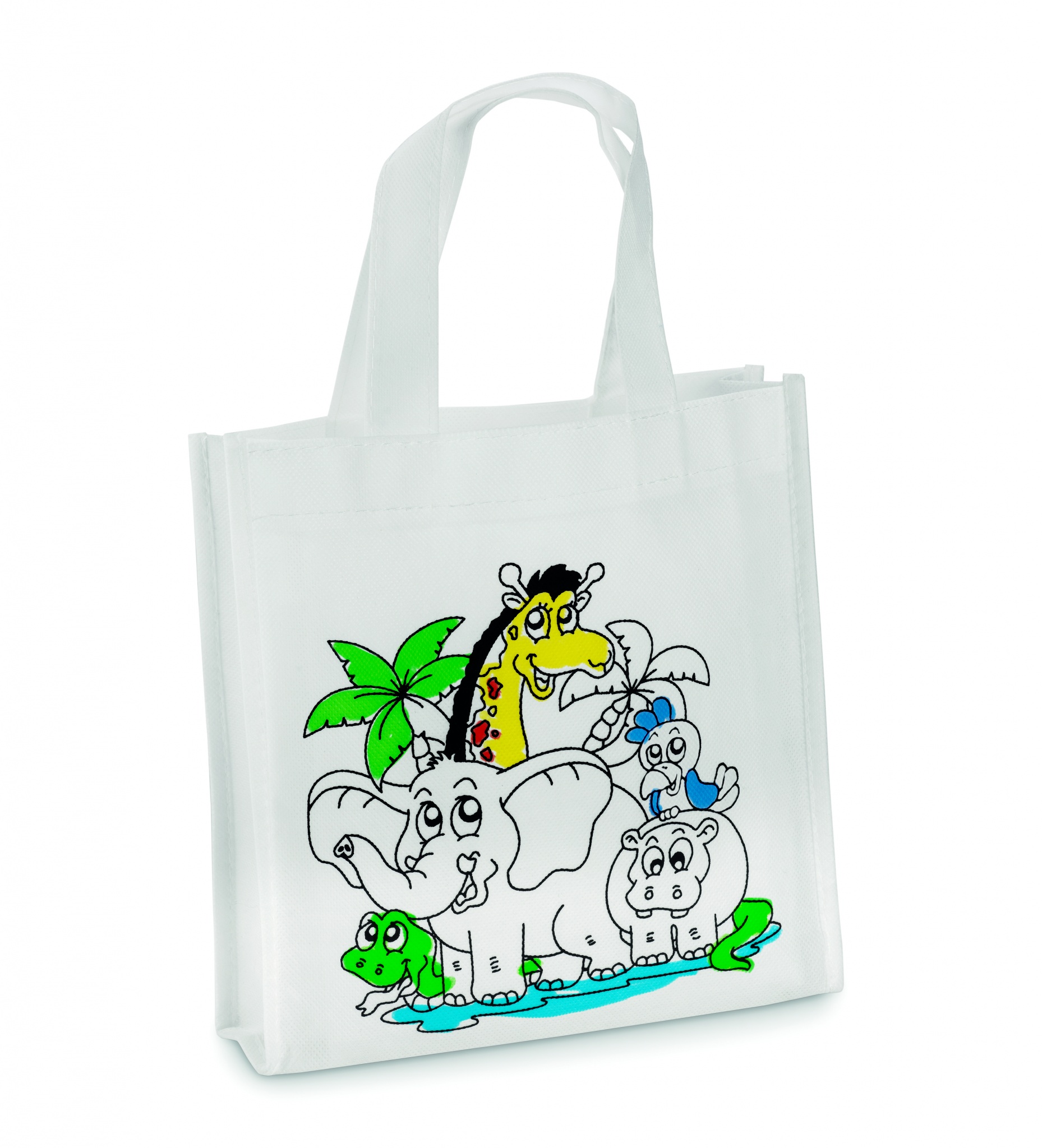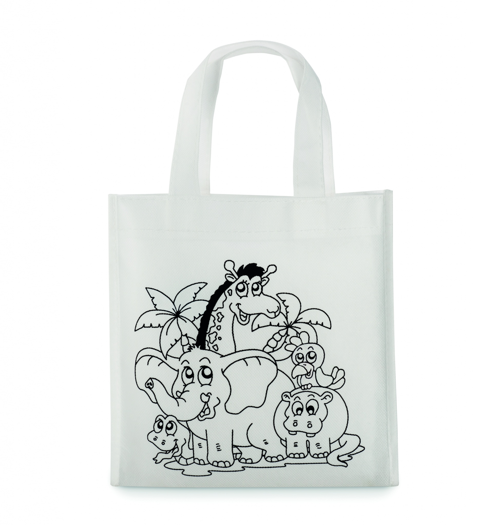 Kuitukankainen mini-ostoskassi ja 5 värityskynää, 80 g / m².