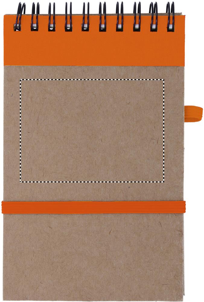 Kierrätetty muistikirja ja yhteensopiva kuulakärkikynä sinisellä musteella, sisältää 140 tyhjää kierrätettyä sivua (70 arkkia) kumilenkin ja kynän silmukan. Kynässä biohajoavat muovi osat ja kartonkinen runko.