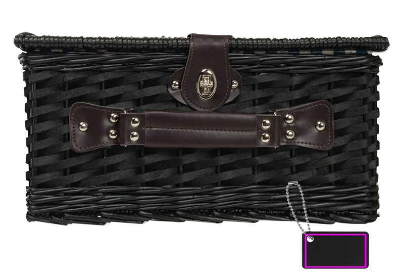 Suuri piknikkori kahdelle - paju, integroitu kylmälaukku, keraamiset lautaset ja muovipurkit, ruostumattomasta teräksestä valmistetut ruokailuvälineet, tarjoilijan veitsi sekä suola- ja pippuripuristimet. Painamme logosi (täysvärinen) etikettiin, joka ripustetaan koriin.