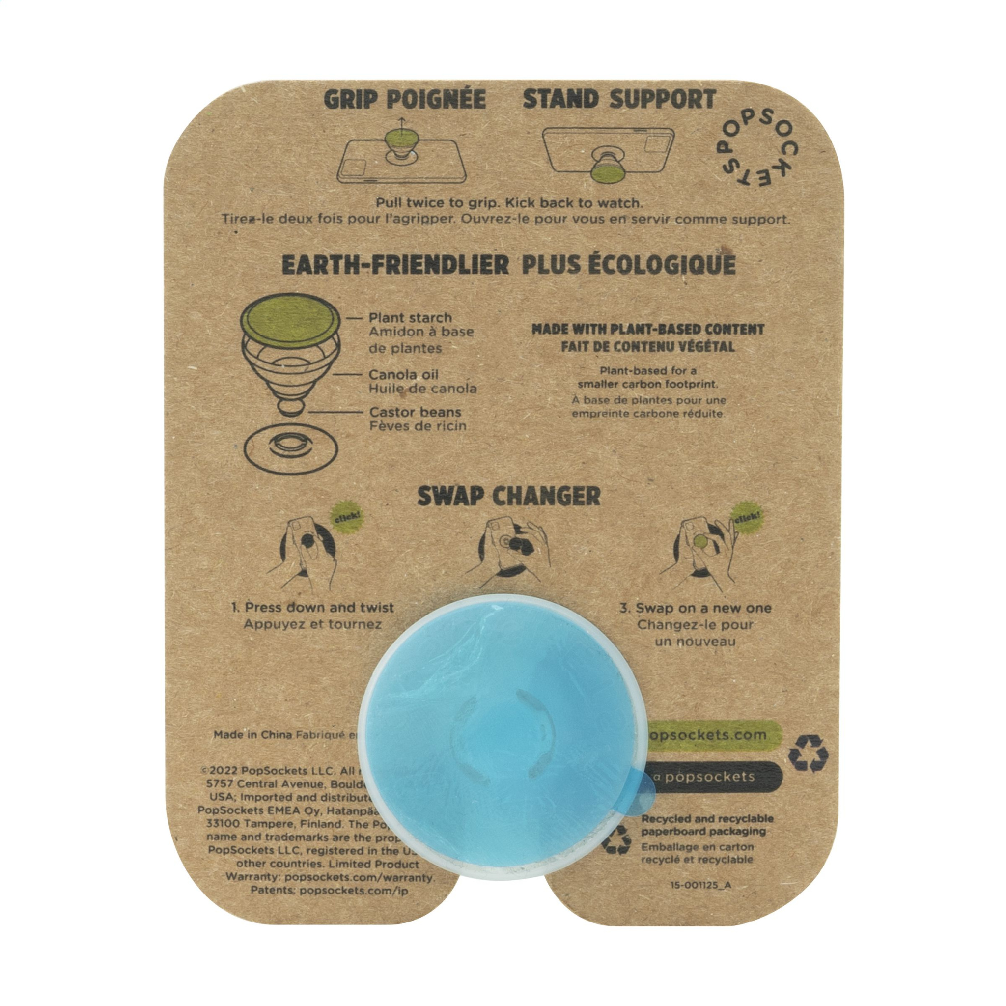 Kätevä ja monikäyttöinen puhelinlisälaite. Kehitetty 35 % kasvipohjaisista materiaaleista, mukaan lukien maissitärkkelys, rypsiöljy ja risiinipavut. Kiinnitä tämä esine puhelimen takaosaan 3M-liimanauhalla ja käytä käteviä toimintoja: mukava ote paremman otteen saamiseksi, toimiva jalusta ja selfie-pidike. Siinä on 2 erilaista ponnahdusasentoa ja se on joustava, joten voit sijoittaa älypuhelimen haluamallasi tavalla. Sopii kaikille yleisesti käytetyille älypuhelimille, iPhoneille ja muille laitteille. Lue mukana toimitetut ohjeet PopSocketin® optimaalista käyttöä ja huoltoa varten. Lisätiedot toimitusajoista: 60 - 500 kpl: 1 viikko, 500 - 1 500 kpl: 2 viikkoa. Yli 1500 yksikköä, hinta ja toimitusaika pyynnöstä. PopSockets® toimitetaan vain tulosteen mukana. PopSocketin mukana tulee voimapaperista valmistettu kortti (85 x 108 mm). Tätä ei voi tulostaa täysivärisenä. Jos haluat tulostaa kortin, se on mahdollista vain valkoiselle kortille.