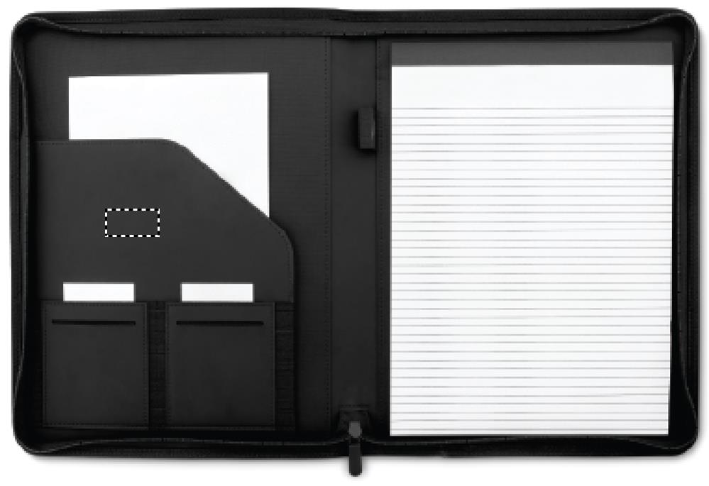 Vetoketjullinen A4 portfolio kaksisävyisestä polyesteristä, sisältää sisätaskut, kynänsilmukan ja 20 sivuisen muistilehtiön.