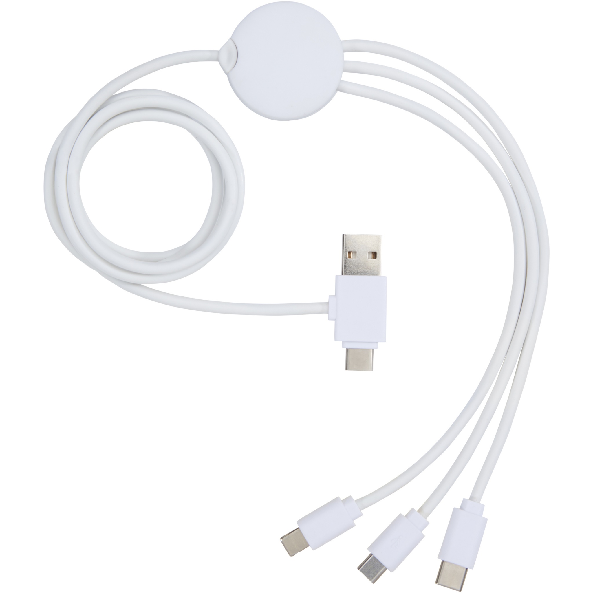 Latauskaapeli antibakteerisella lisäaineella ja viidellä eri liittimellä: Type-C-tulo, USB-A-tulo, Type-C-lähtö, iOS-lähtö ja Micro USB -lähtö. Tämä mahdollistaa kaapelin käytön myös Type-C-lisälaitteiden kanssa, jotka sisältyvät uusien sukupolvien puhelimiin ja MacBook-tietokoneisiin. Kaapelin pituus on 100 cm. Antibakteerinen lisäaine pystyy vähentämään materiaalin pinnalla olevia bakteeritasoja tehokkaasti estäen bakteerien ja sienien kasvua, jotka ovat vastuussa epämiellyttävien hajujen syntymisestä, värjäytymisestä ja tekstiili- ja muovituotteiden hajoamisesta. Testattu ISO 20743:2013 -standardin mukaisesti.