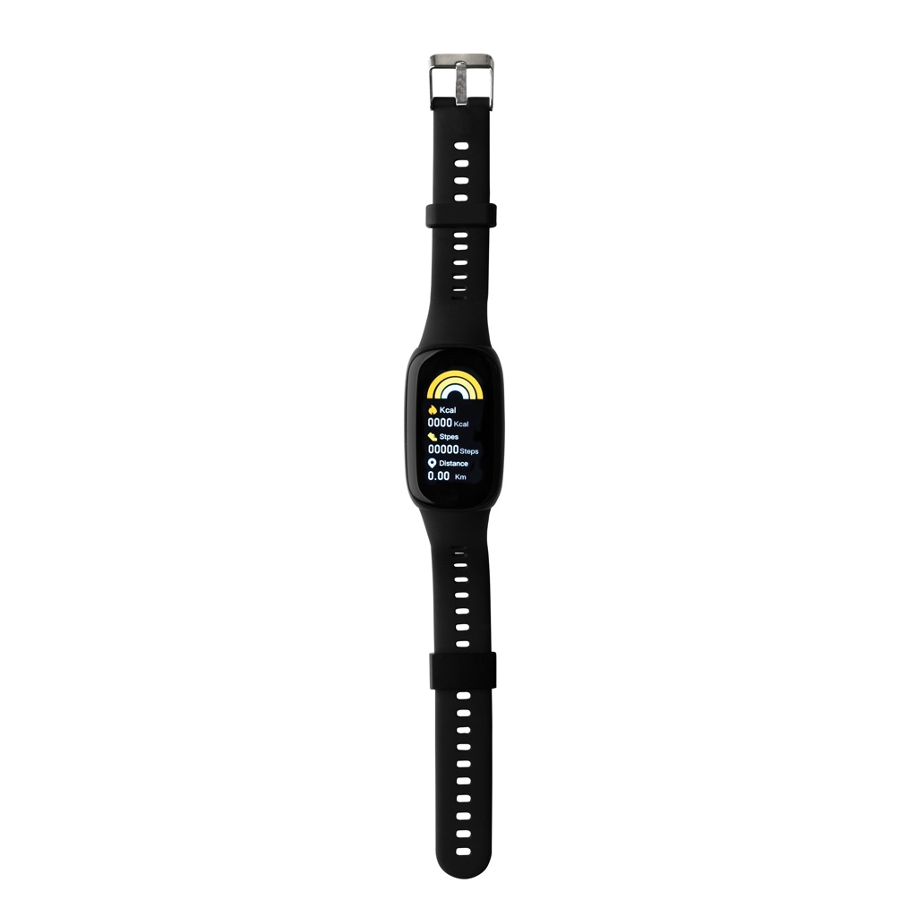 Tämä aktiviteettikello auttaa sinua löytämään energiaa ja tuntemaan olosi hyväksi. Kello on vedenkestävä (IP67) ja sen ranneke on valmistettu kierrätetystä TPU :stä tehden siitä mukavan käytettäväksi päivin ja öin. Helppokäyttöinen suuri 1.47" OLED kosketusnäyttö. Valmistettu RCS (Recycled Claim Standard) sertifioidusta kierrätetystä TPU :stä ja ABS:stä (kehys). Kierrätetyn materiaalin kokonaismäärä: 28% perustuen tuotteen painoon. RCS sertifiointi varmistaa kierrätettyjen materiaalien täysin sertifioidun toimitusketjun. Sisältää ilmaisen sovelluksen. BT5.0. Toiminnot: viestimuistutus, älyherätyskello, kello, askelmittari, etäisyys, kalorit, sykemittari, verenpaineen seuranta, veren happipitoisuuden seuranta, multi-sport -toiminto (11). Musiikin hallinta, viesti-ilmoitukset, unitoiminto, puhelutoiminto, ajastin. Aloita terveellisempi elämä tänään. Standby-aika 20 päivää ja toiminta-aika jopa 10 päivää. Pakattu FSC®-sekoituksesta valmistettuun kraft-pakkaukseen. 100% PVC-vapaa.