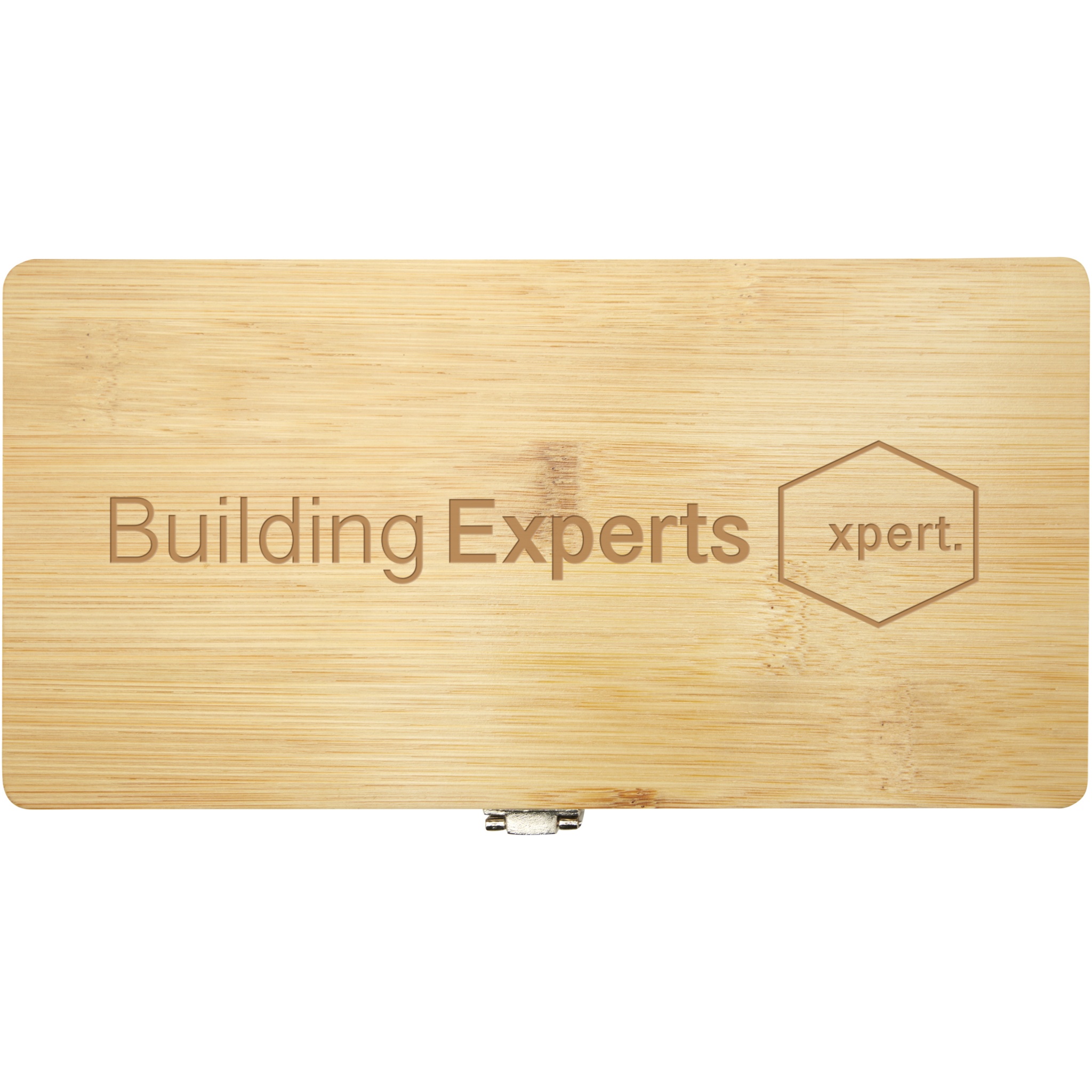 Koe täydellinen yhdistelmä ympäristöystävällisyyttä ja toiminnallisuutta Rivet-työkalusetin avulla. Tämä huolellisesti suunniteltu työkalupakki on visuaalisesti houkutteleva ja myös ympäristöystävällinen laadusta tai suorituskyvystä tinkimättä. Bambun luonnollinen lujuus ja kestävyys takaavat, että työkalusi pysyvät suojassa vuosien ajan. Kotelo sisältää 19 hiiliteräksestä ja kierrätysmuovista valmistettua kätevää työkalua: 1 pitkä nivelkahva, 4 korkealaatuista kantaa erilaisiin käyttötarkoituksiin, 1 pidennystanko vaikeapääsyisiin kohtiin, 10 tarkasti suunniteltua ruuvimeisselin kärkeä mihin tahansa tehtävään ja 3 kuusiokoloavainta huonekalujen kokoamiseen. Olitpa sitten kotinikkaroija tai ammattilainen, nämä työkalut toimivat luotettavasti ja kestävät kovaa käyttöä. Koska bambu on luonnollinen tuote, tuotteen värissä ja koossa voi olla pieniä eroja, jotka voivat vaikuttaa logomerkinnän lopulliseen ulkonäköön. Pakattu ympäristöystävällisistä materiaaleista valmistettuun STAC-lahjarasiaan.