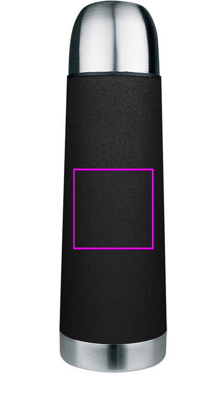 Tyylikäs ruostumattomasta teräksestä valmistettu 0,5 l:n eristyspullo, irrotettava juomakuppi mattaväriseksi poltetulla lakalla. Logosi laserkaiverretaan hopealla. Jokainen pullo on pakattu yhteen pahvilaatikkoon.