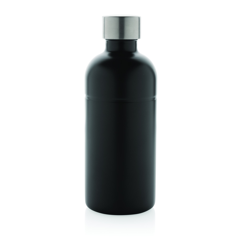 Tämä pullo on valmistettu kierrätetystä ruostumattomasta teräksestä ja se on täydellinen jokapäiväiseen käyttöön. Ainutlaatuinen muotoilu mahdollistaa sen käytön jopa hiilihapollisille juomille, ja sen tiiviys on taattu. Valmistettu RCS (Recycled Claim Standard) -sertifioiduista kierrätysmateriaaleista. RCS-sertifiointi varmistaa, että kierrätysmateriaalien toimitusketju on täysin sertifioitu. Kierätetyn materiaalin kokonaismäärä: 85% kokonaispainosta. BPA-vapaa. Tilavuus 800 ml. Mukana FSC®-sertifioitu kraft-pakkaus. Rekisteröity muotoilu®.