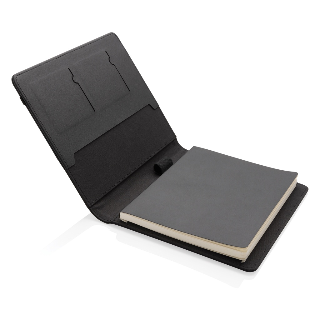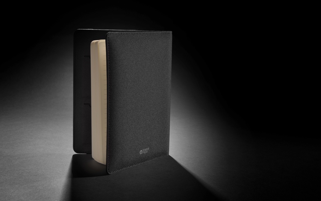 Kierrätyspolyesteristä ja RCS-sertifioidusta kierrätetystä PU:sta valmistettu portfolio yhdistää tyylin ja vähäiset ympäristövaikutukset. Kolme korttilokeroa, kynälenkki ja tilava A5-dokumenttitasku. Uudelleentäytettävä A5 muistikirja, joka on valmistettu FSC®-mix kermanvärisestä 80 g/m² paperista. Valitse tyylikäs vihko hyvällä omatunnolla. Valmistettu 100% kierrätetystä polyesteristä, johon on upotettu AWARE™-jäljitysainetta. Pakattu FSC®-lahjapakkaukseen.