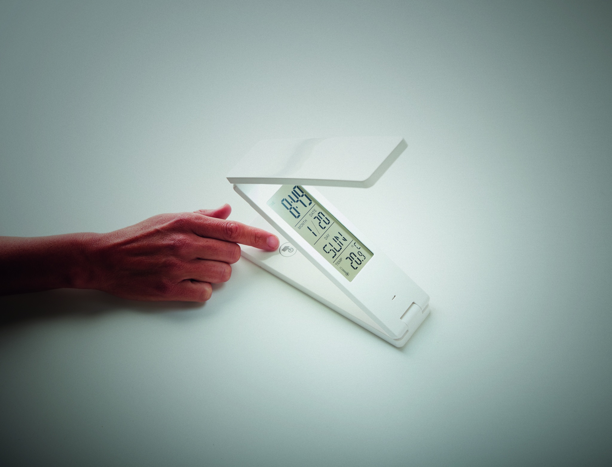 ABS 18 ledin taitettava. Näyttää ajan, lämpötilan ja sisältää herätyskello toiminnon. 1 CR2032 patteri sisältyy toimitukseen.
