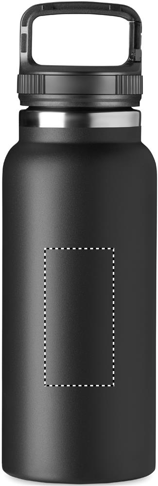 Kaksiseinäinen ruostumattomasta teräksestä valmistettu termospullo, jossa on ripustuslenkki korkissa. Tilavuus: 970 ml.