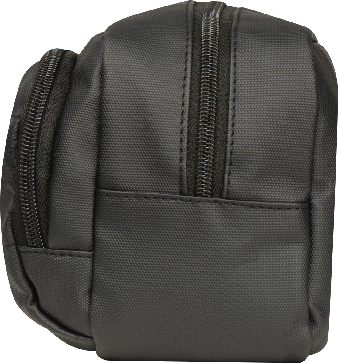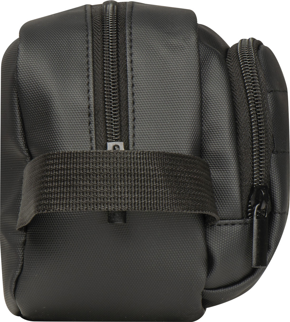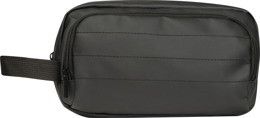 Korkealaatuinen pehmustettu hygienialaukku polyesteristä PU-pinnoitteella. Siinä on vetoketjullinen pääosasto ja vetoketjullinen lisätasku edessä sekä kantolenkki. Kestävä ja vedenpitävä, täydellinen matkoille ja päivittäiseen käyttöön.