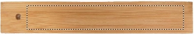 6-osainen toimistosetti, sisältää juutti/puuvillapussin, bambuviivoittimen, puisen teroittimen, pyyhekumin, paperikynän, kuulakärkikynän sinisellä musteella ja pahvisella rungolla.