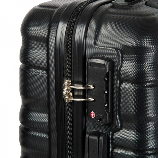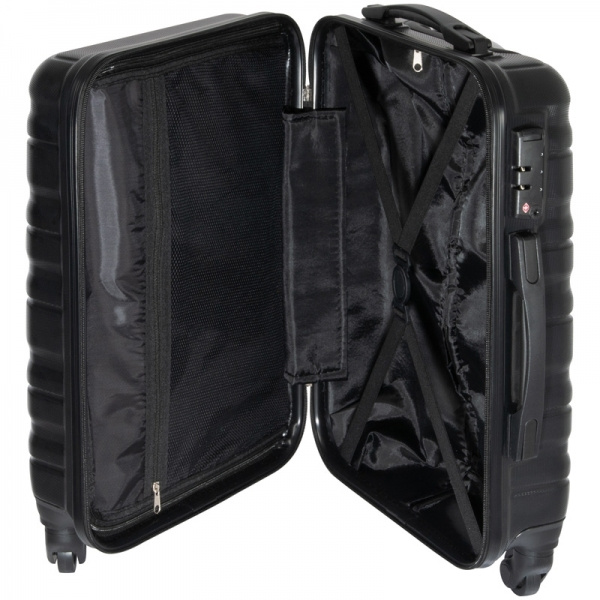 Kestävä matkavaunu, jossa on erilaisia sisätaskuja ja käsimatkatavarakoko. Painamme logosi tarraan.