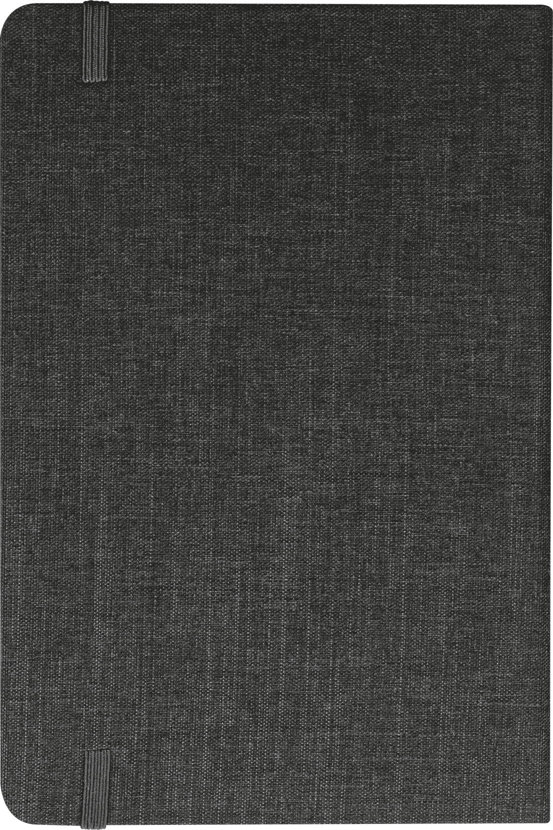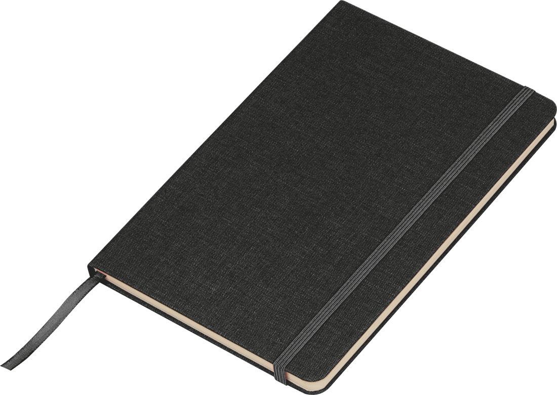 Kestävä A5-muistivihko, jossa on kierrätetystä PET:stä valmistettu kudottu kansi ja 160 sivua sokeriruokopaperia. Siinä on myös kirjanmerkki ja joustava suljinnauha.