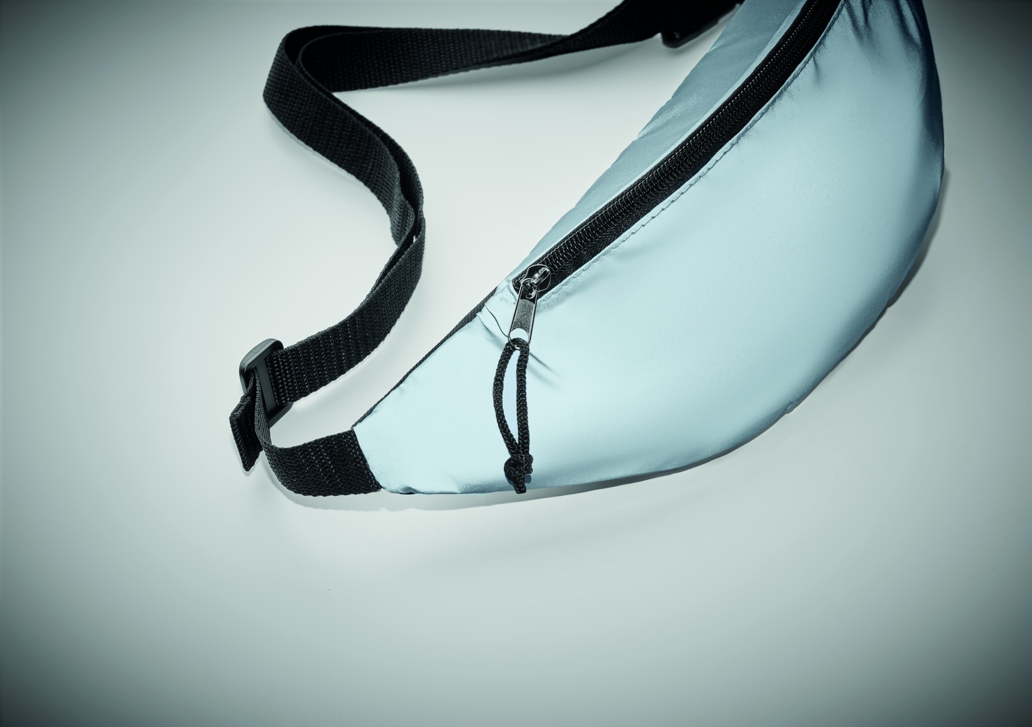 Heijastava vyölaukku polyesteriä, laukussa säädettävä vyötäröhihna.