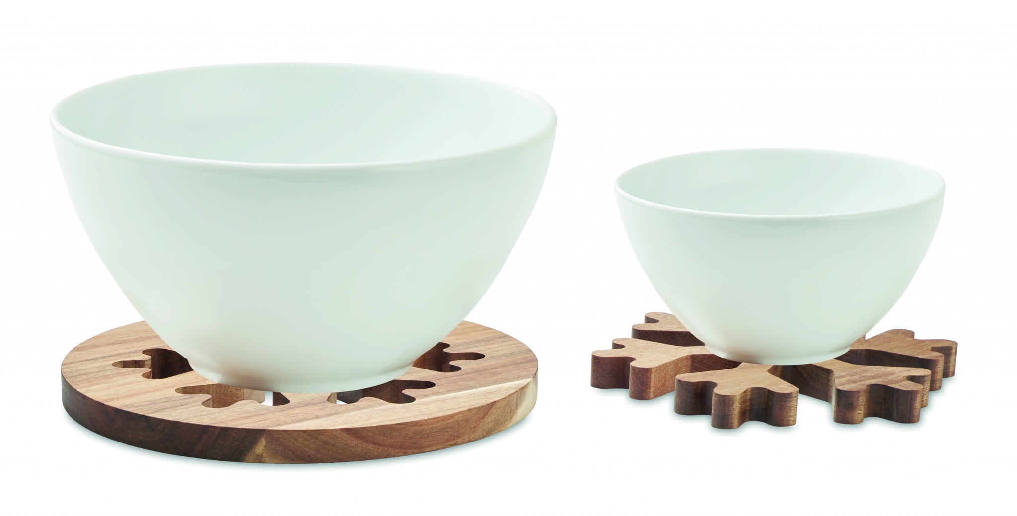 2 akacijos medžio puodų laikiklis su snaigės dizainu. Mediena yra natūralus gaminys, kiekvienos prekės spalva ir dydis gali šiek tiek skirtis, o tai gali turėti įtakos galutiniam apdailos rezultatui.