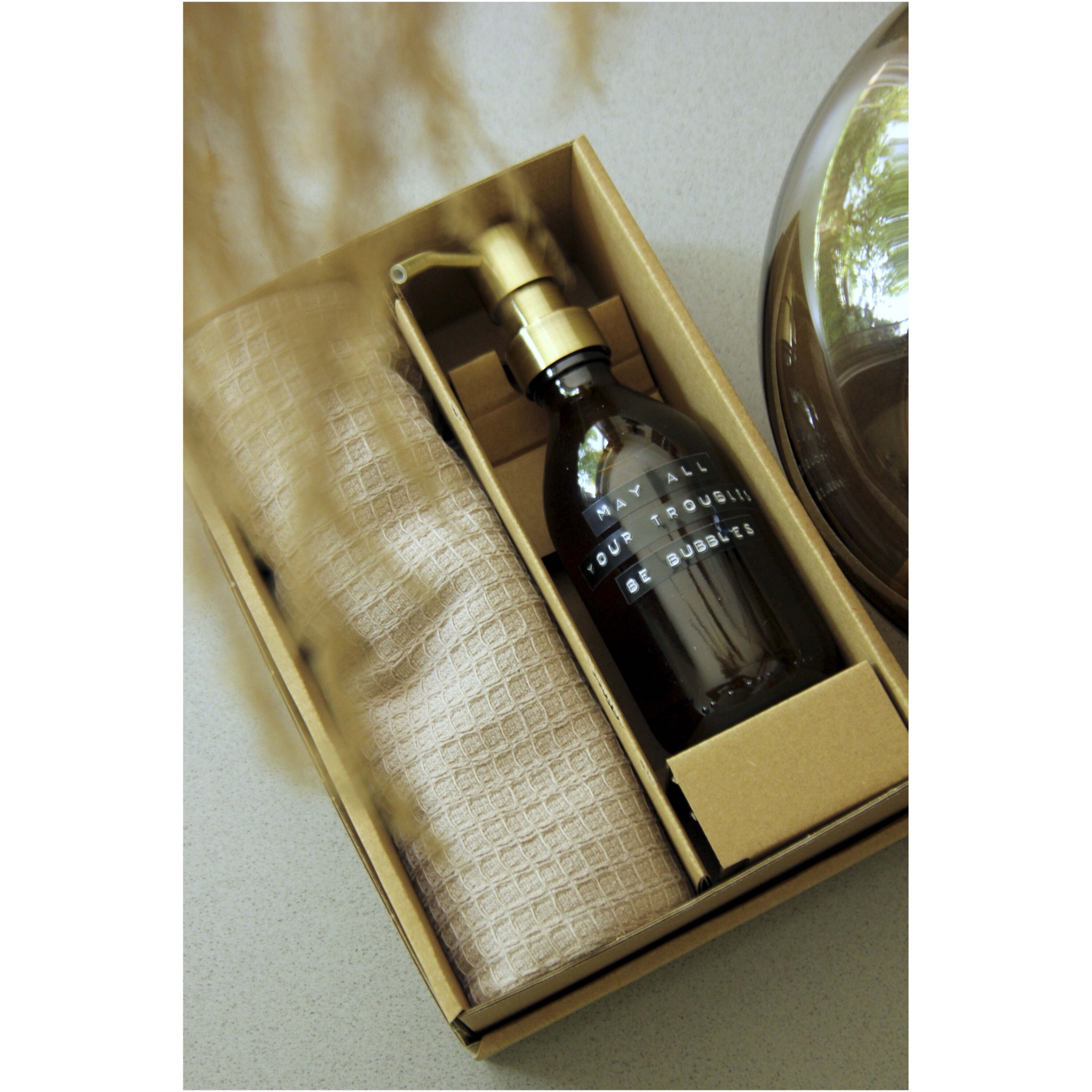 Dovanų rinkinys, kurį sudaro 250 ml bambuko kvapo rankų muilas ir smėlio spalvos rankšluostis, pagamintas iš ekologiškos medvilnės. Šis rinkinys puikiai tiks kaip dovana kiekvienai progai.