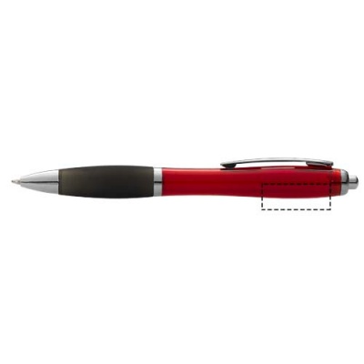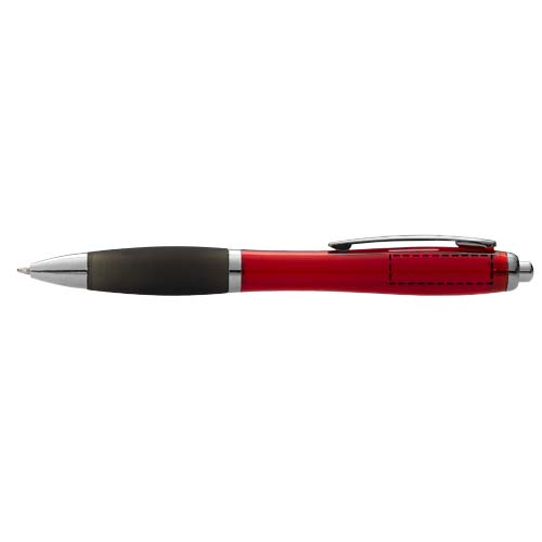Lodīšu pildspalva ar klikšķināšanas mehānismu un mīkstu pieskārienu rokturi.