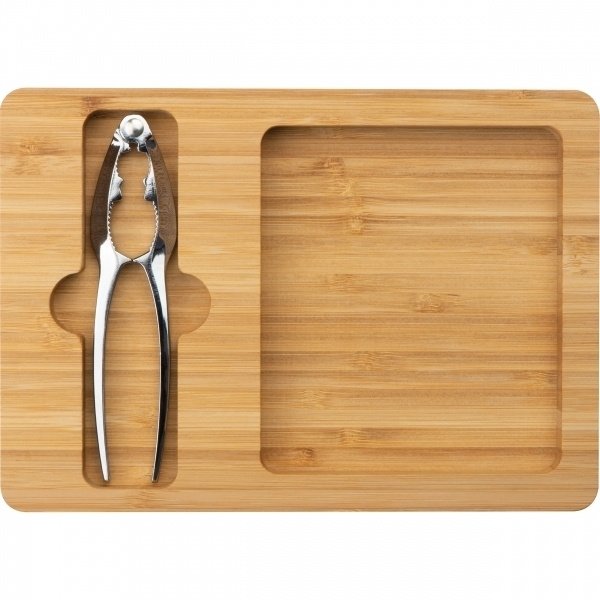 Skaista bambusa bļoda ar metāla riekstu lauzni. Ar šo rakstu piešķiriet savam logotipa ziņojumam īpaši garšīgu iestatījumu. Mēs izdrukājam jūsu logotipu uz bambusa bļodas ar lāzergravējumu.