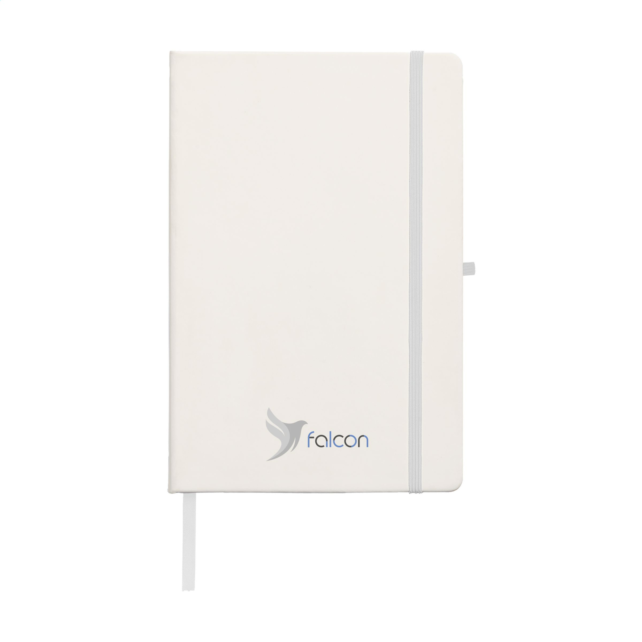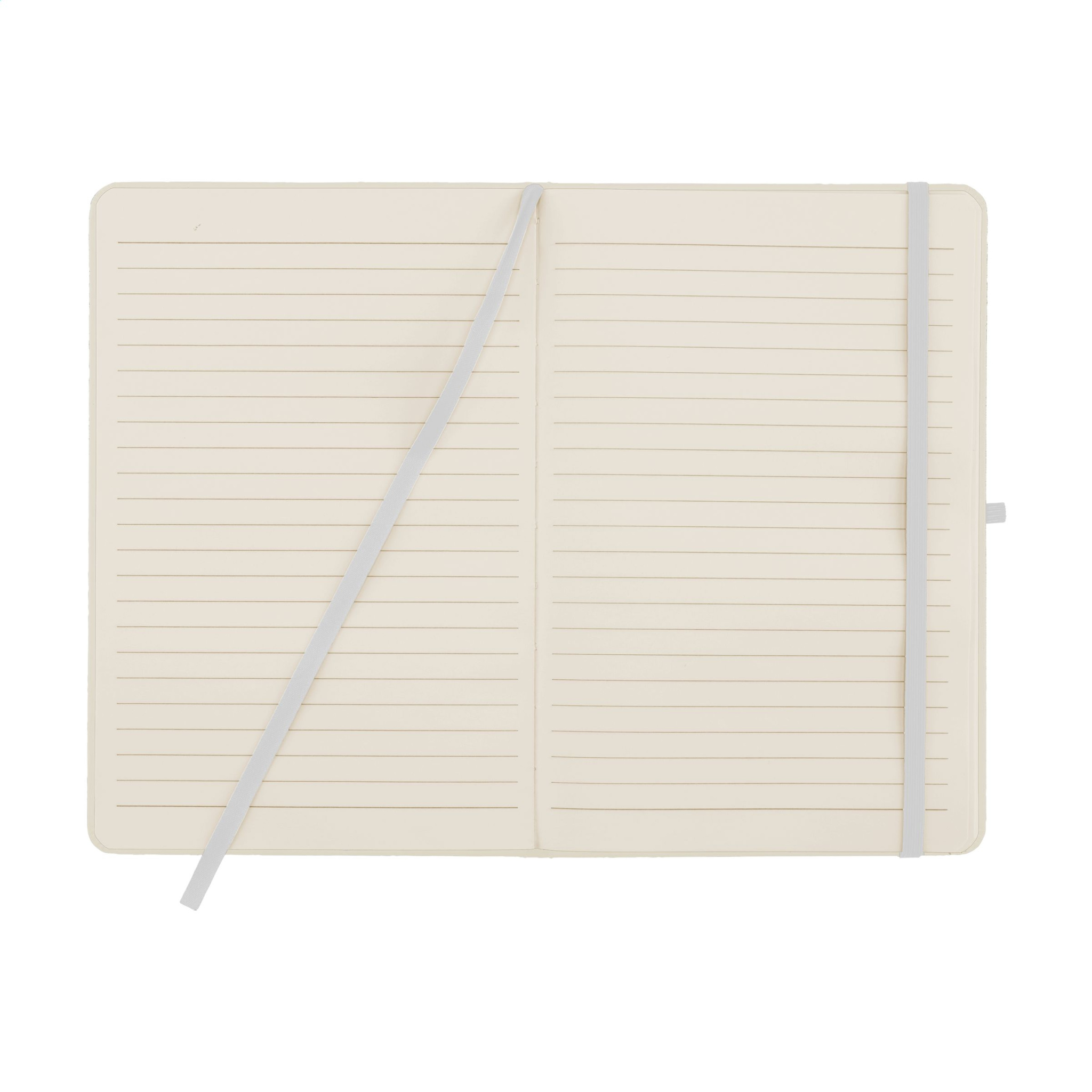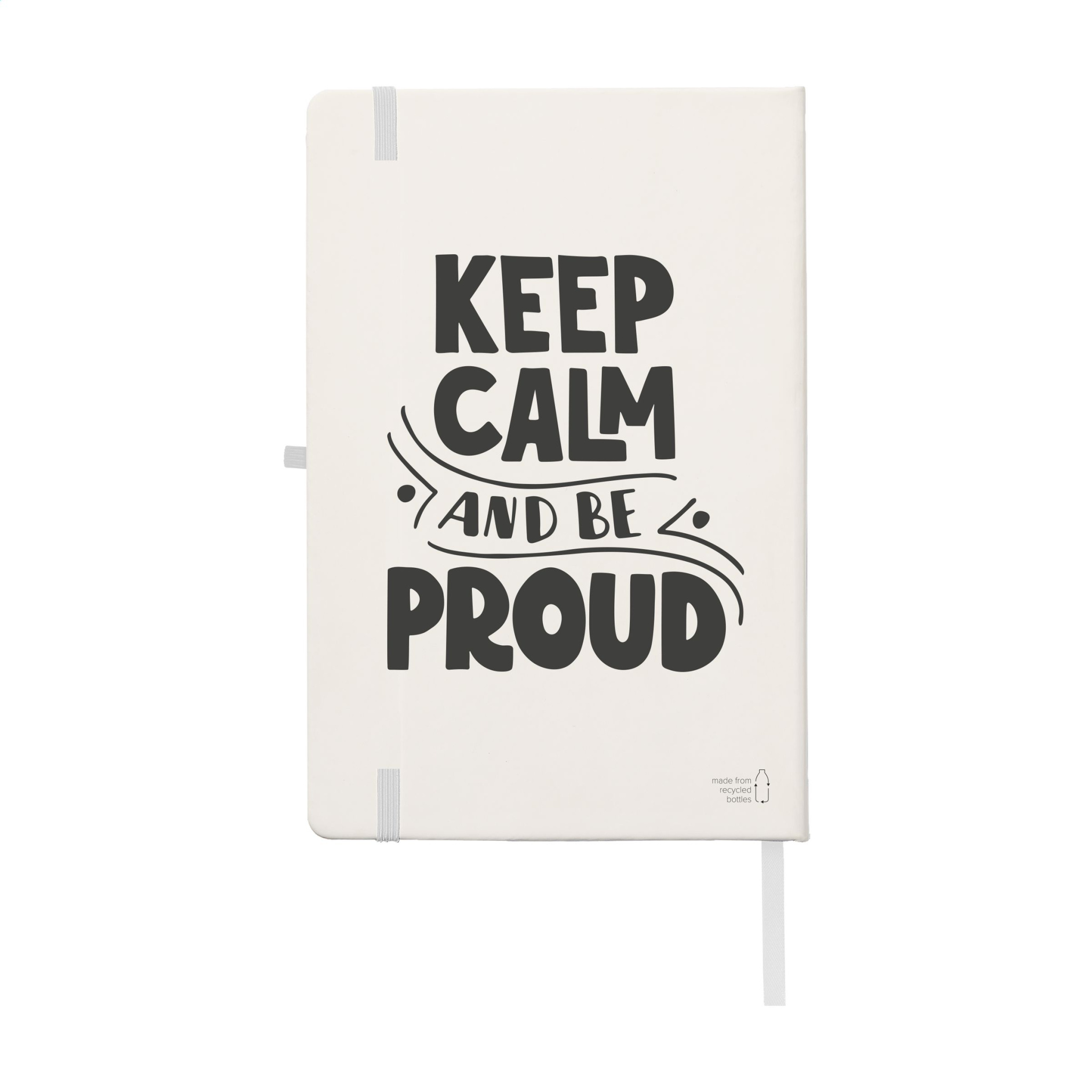 WoW! Практичный блокнот формата А5. С твердой обложкой RPET (изготовленной из ПЭТ-бутылок) и примерно 80 листами/160 листами кремовой линованной бумаги (70 г/м²). С удобной эластичной застежкой, лентой для чтения и петлей для ручки.