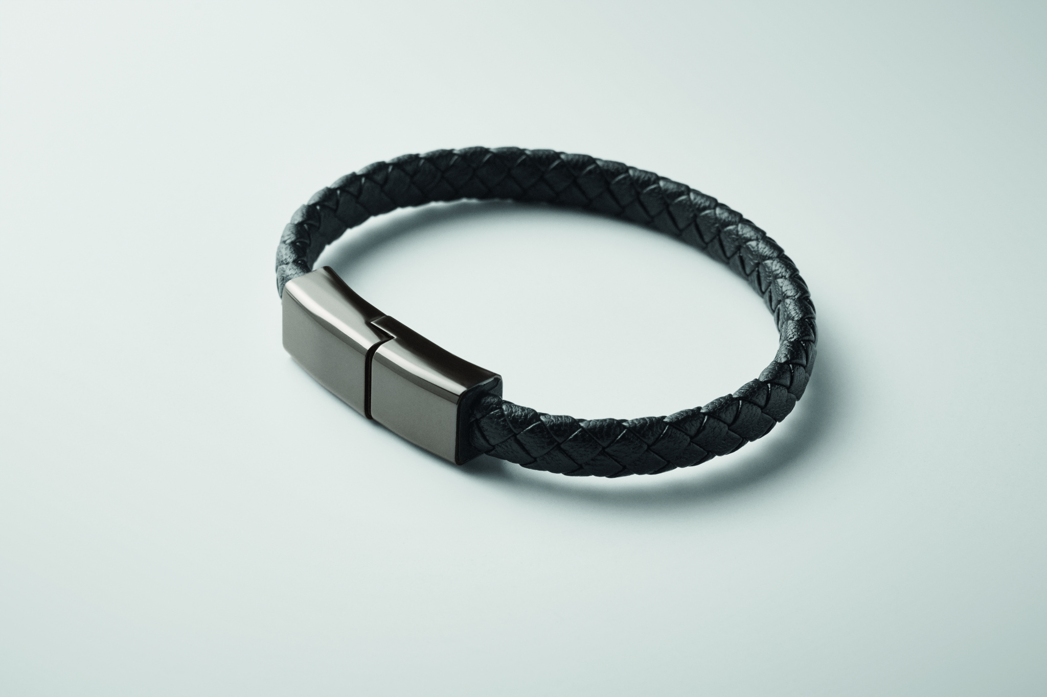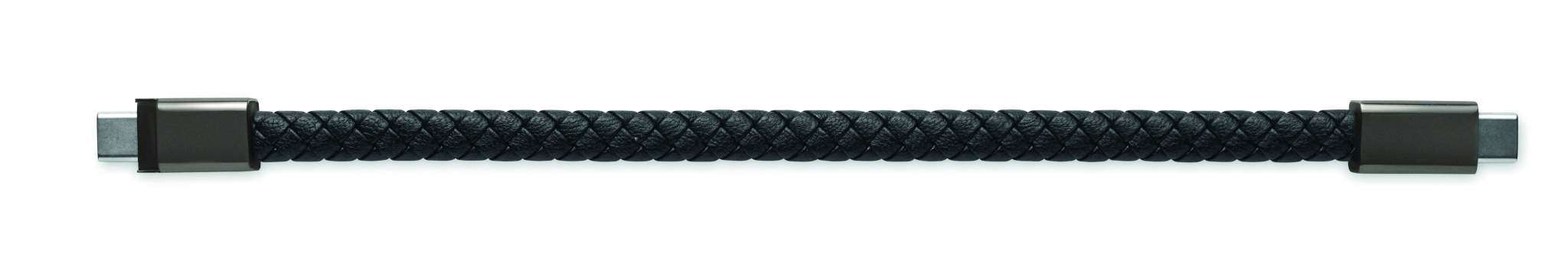 Bracelet with charging and data transfer 60W cable type-C to type-C in PU with zinc alloy braided detail. Wrist circumference approx.: 21 cm.