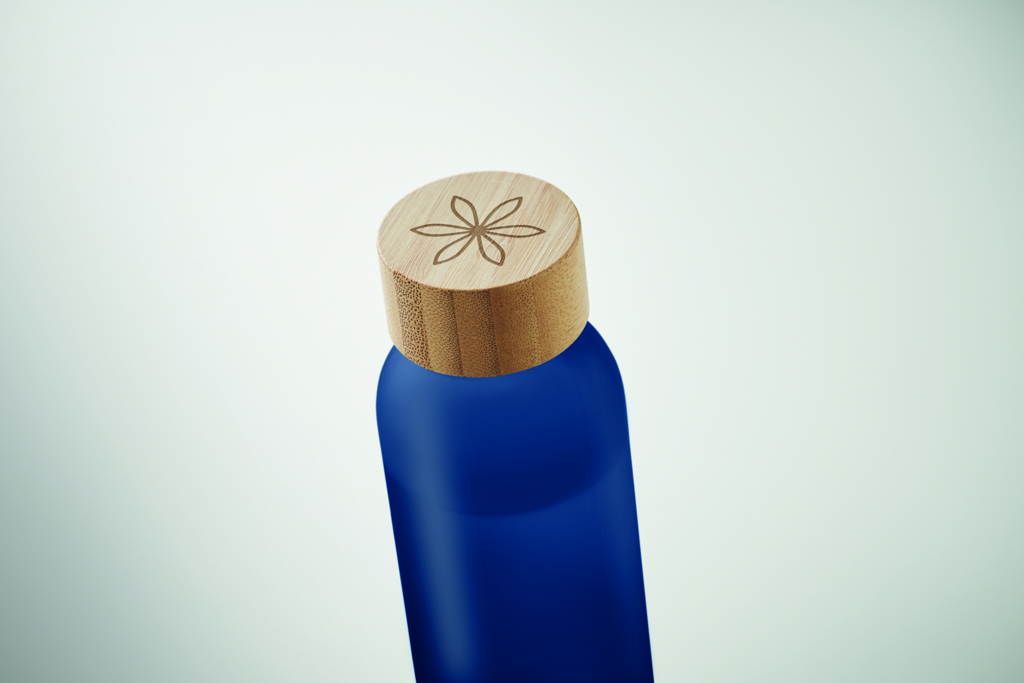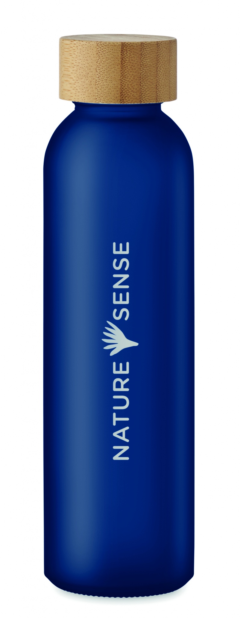 Стеклянная бутылка с матовым покрытием и бамбуковой крышкой. Герметична. Емкость: 500 мл.
