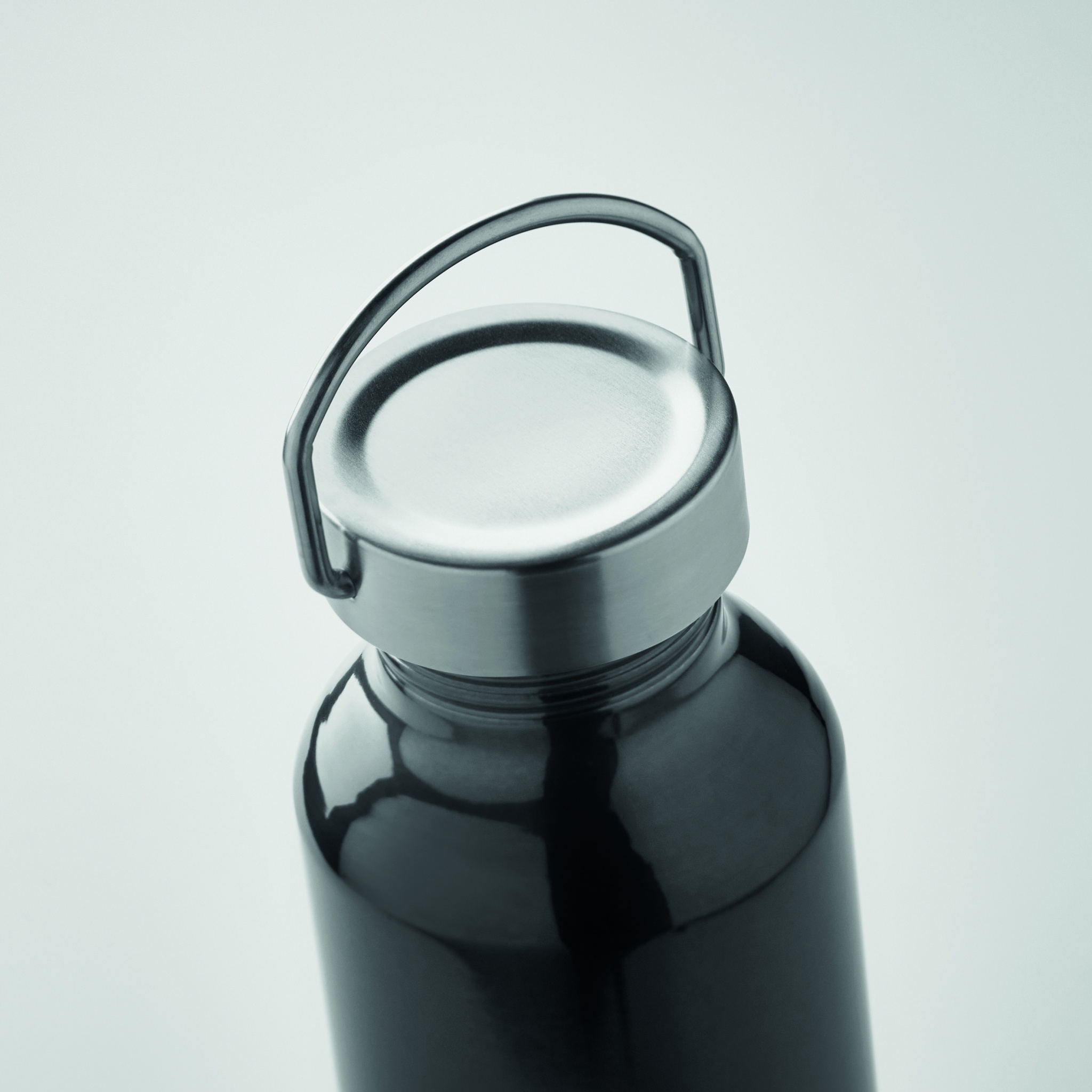 Бутылка объемом 500 мл из переработанного алюминия с крышкой с ручкой из нержавеющей стали, Черный