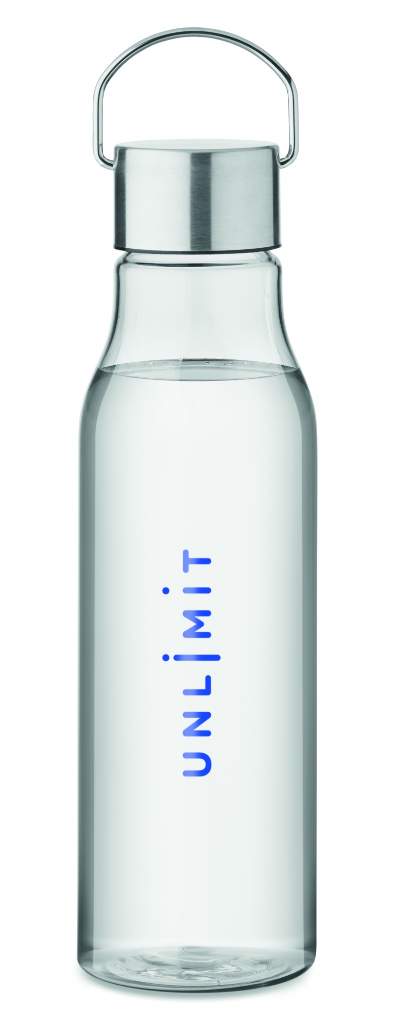 Бутылка для питья из RPET, не содержащего BPA, с крышкой из нержавеющей стали с ручкой. Герметична. Объем: 600 мл.