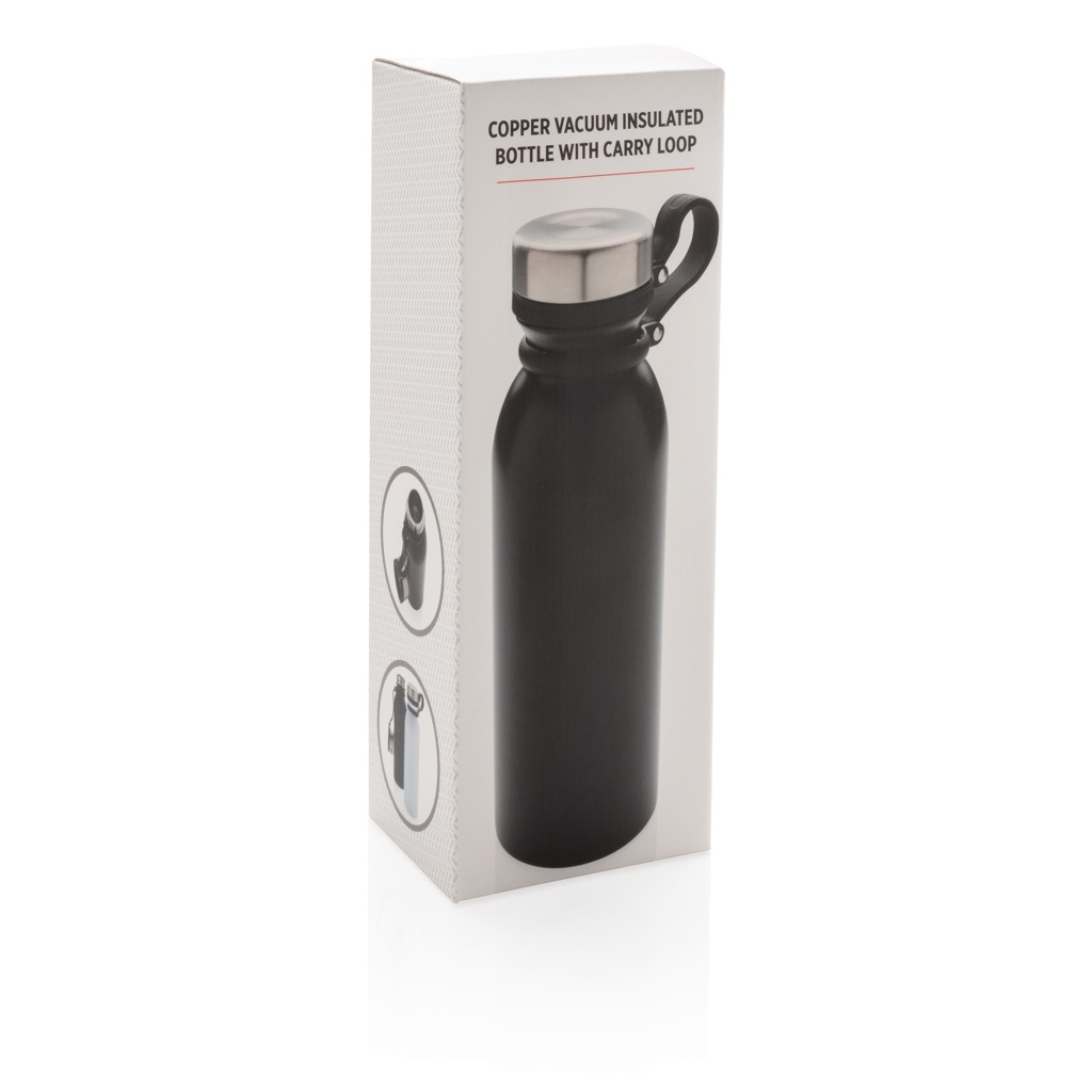 Бутылка с вакуумной изоляцией из меди и петлей для переноски, черный