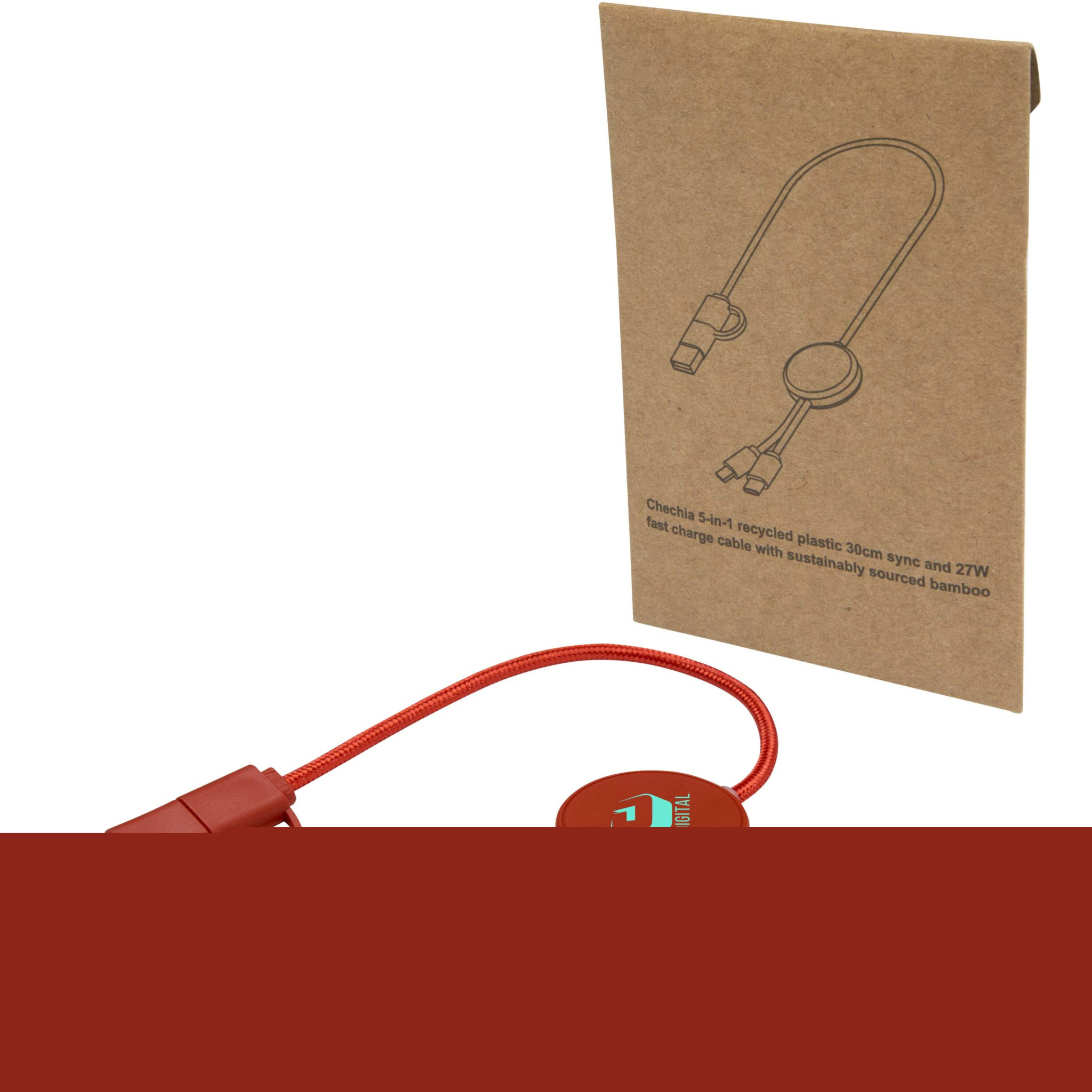 Citala кабель 5-в-1 для синхронизации данных и быстрой зарядки мощностью 27 Вт изготовлен из переработанного пластика. Этот кабель оснащен входными разъемами USB-A и Type-C в сочетании с выходным разъемом Type-C и комбинированным выходным разъемом Lightning/Micro USB. USB-A — USB-C обеспечивает выходную мощность до 27 Вт, а все остальные варианты подключения — до 15 Вт. Совместим с CarPlay и Android Auto. Независимо от того, находитесь ли вы дома, в офисе или в дороге, кабель Citala обеспечивает производительность и стиль в одном компактном корпусе. Длина кабеля: 30 см.