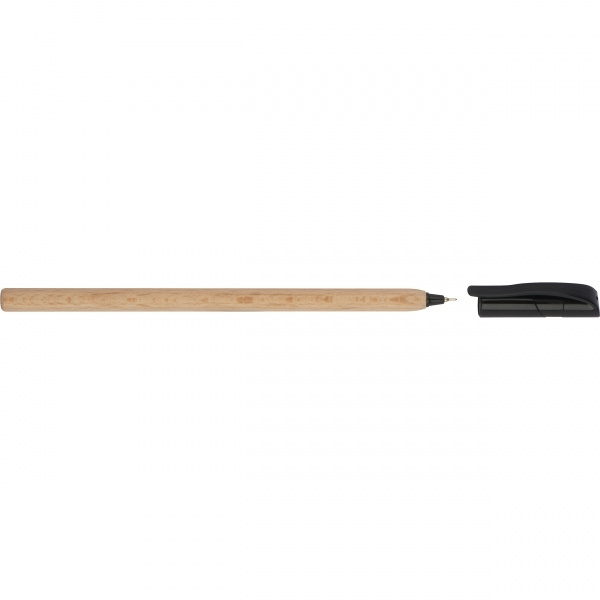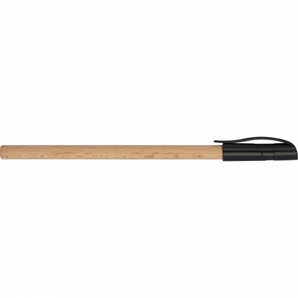Удобная черная шариковая ручка из дерева с черным пластиковым колпачком. Ваш логотип будет выгравирован.