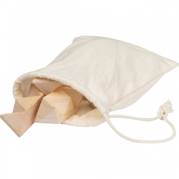 Порадуйте своих клиентов этой красивой деревянной головоломкой в форме 3D-звезды. Закрывающийся хлопковый мешок гарантирует, что ничего не потеряется. Мы напечатаем ваш логотип на мешке. Печать только 1 цвета.