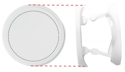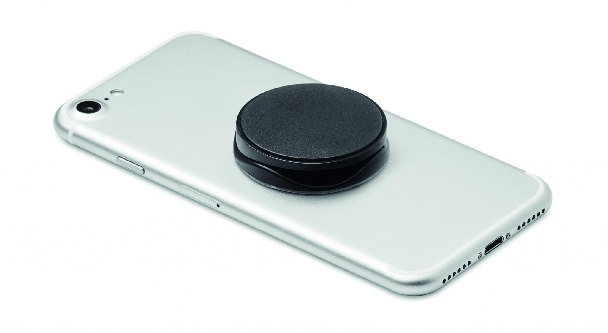 Складной аксессуар для телефона круглой формы из пластика с двумя функциями: подставка для телефона и держатель. Cтикер на задней поверхности.