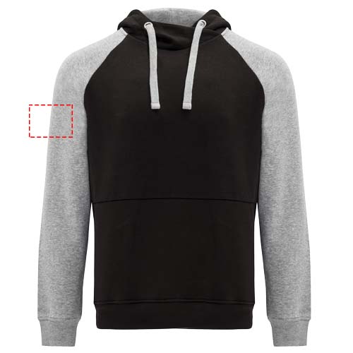 Двухцветное худи унисекс. Капюшон со перекрещенным вырезом и металлическими люверсами. Контрастный внутренний капюшон, шнурок и рукава реглан. Карман "кенгуру". Манжеты и подол связаны эластановой резинкой 1x1. Съемная этикетка.