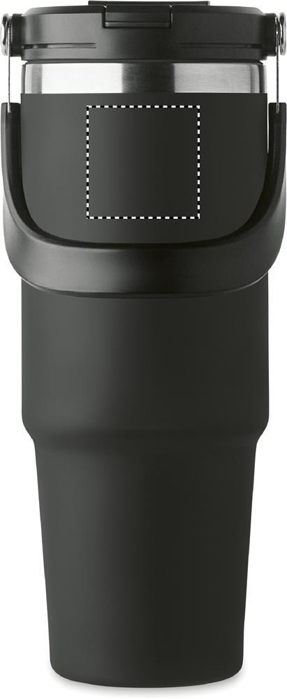 Double wall recycled stainless steel (90% recycled stainless steel and 10% stainless steel) tumbler with lid with inner straw, foldable mouth piece and direct drinking opening . Capacity 850 ml.