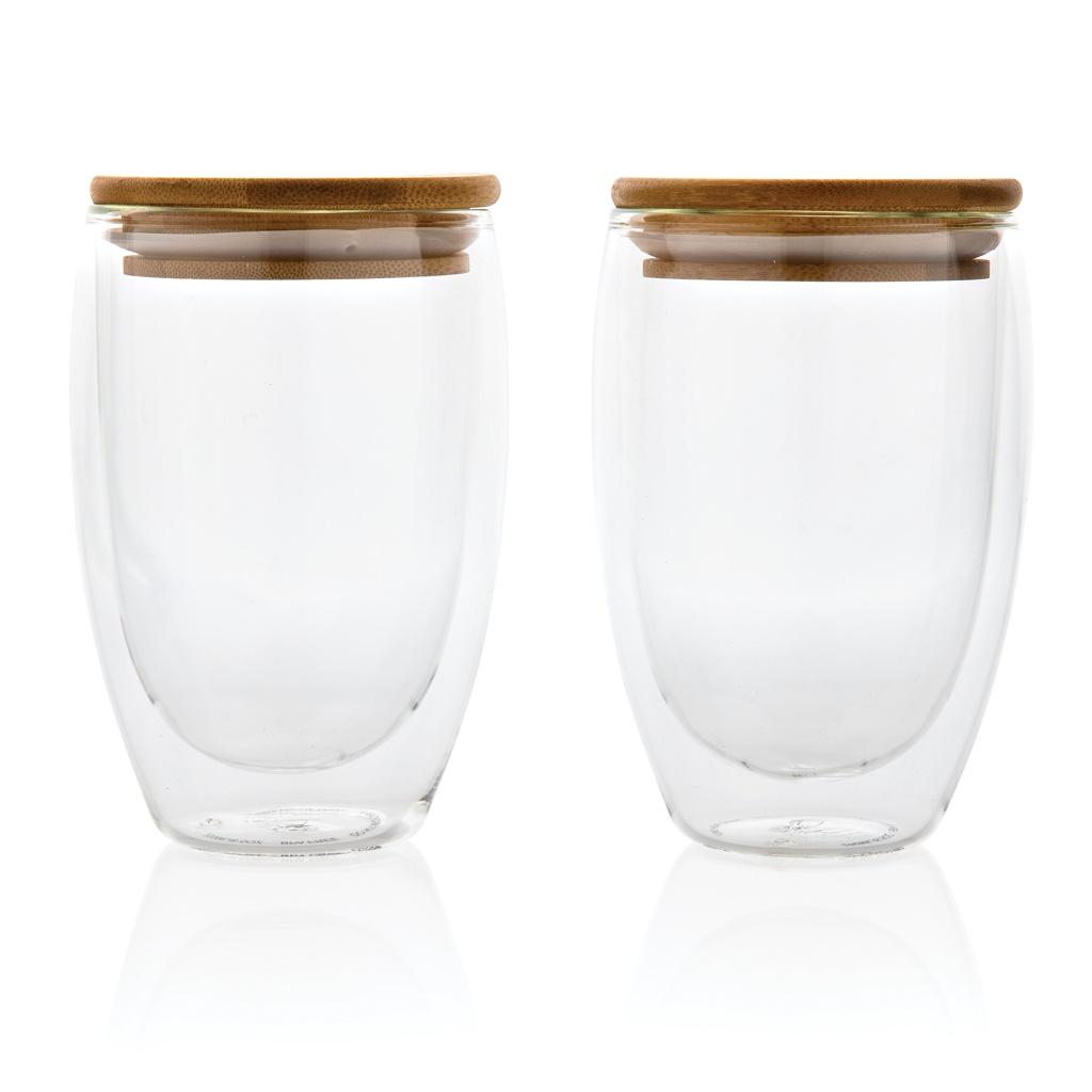 Двойные стенки из боросиликатного стекла с бамбуковой крышкой 350 мл, набор из 2 предметов