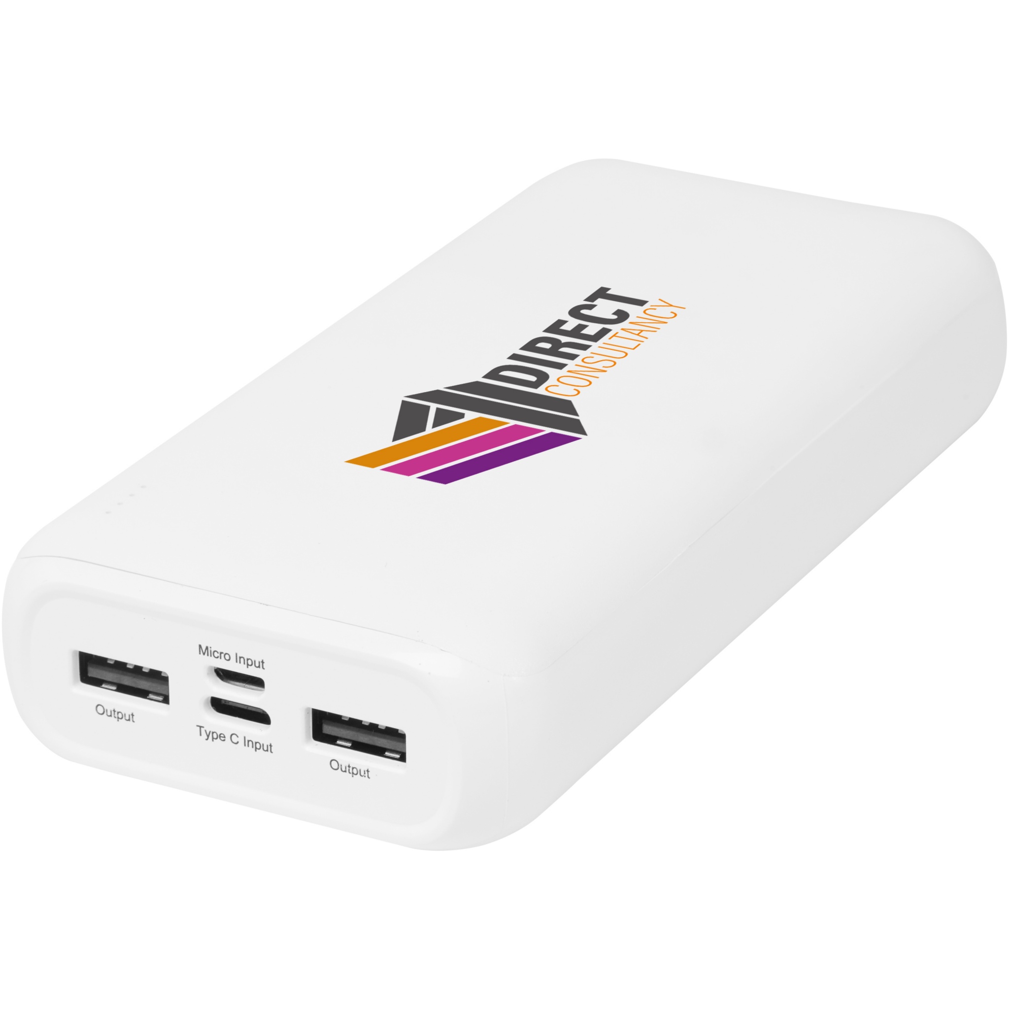 Портативное зарядное устройство Electro емкостью 20 000 мА·ч изготовлено из переработанной пластмассы и имеет 4 порта для быстрой зарядки нескольких мобильных устройств одновременно. Это портативное зарядное устройство содержит литий-ионную батарею класса А и имеет 4 светодиодных индикатора, которые показывают оставшийся заряд батареи. Вход Micro USB/Type-C 5 В/2 А. Выход USB 1 5 В/1 А. USB-выход 2 5 В/2,1 А макс. Общая мощность 10,5 Вт. Поставляется с зарядным кабелем TPE USB Type A-C длиной 30 см. Поставляется с подарочной коробкой из крафт-бумаги и инструкцией по эксплуатации.